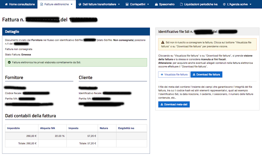 Nella pagina che si apre vediamo i dati riassuntivi della fattura